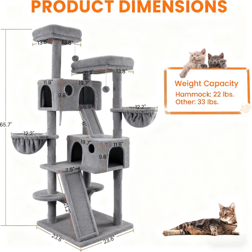 - Spacious Design: Widened top perch (21.2”) + broadened cat condos (19.7”) for large cats to relax